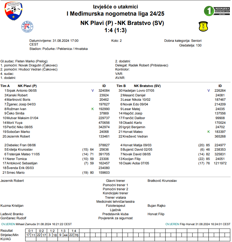 NK Plavi (P) – NK Bratstvo (SV) 1:4