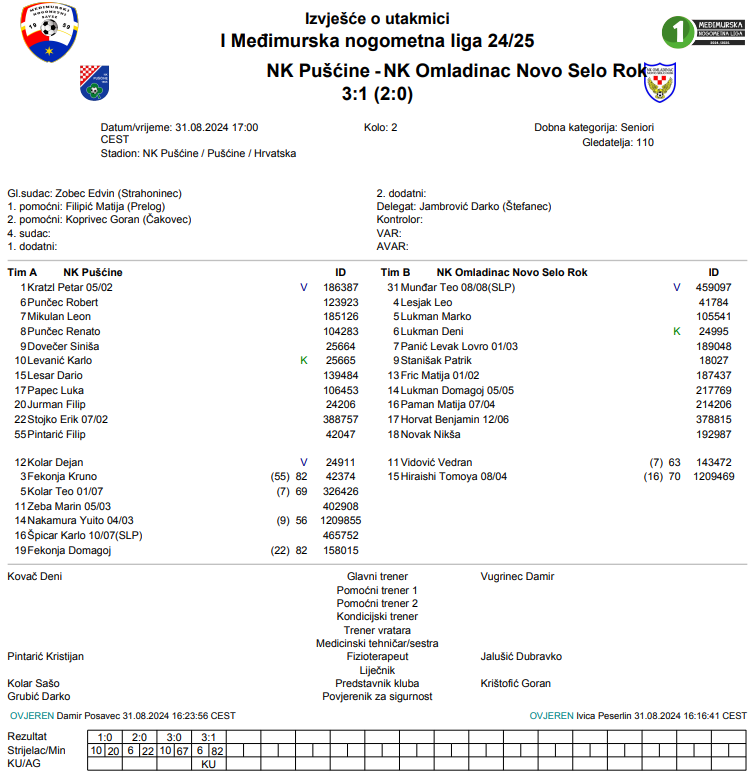 Pušćine na startu natjecateljske sezone nižu uspjehe i ne briga ih igraju li kod kuće, u gostima, u Prvoj MNL ili Kupu MNS-a. Kako i da brinu kada je kapetan momčadi Levanić uhvatio formu i s nova dva pogotka zauzeo prvo mjesto na listi najboljih strijelaca. Nije jedini koji zabija drugo kolo zaredom jer je i Punčec bio precizan. Za goste je Lukman pogodio pred kraj utakmice.