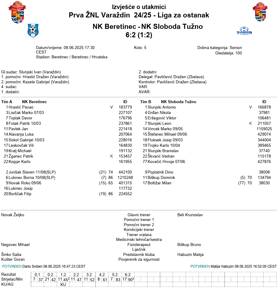 Beretinec je u posljednjem kolu ovisio o sebi, ali i o Mladosti iz Varaždina, pa je za ostanak u ligi čekao dva scenarija. Prvo, morali su pobijediti Slobodu, a Mladost (V) je morala izgubiti svoju utakmicu protiv Zelengaja. Na kraju se desilo i jedno i drugo! Beretinec je na pogon raspoloženog Jana Pavleka visoko nadigrao Slobodu i uspio sačuvati prvoligaški status.
