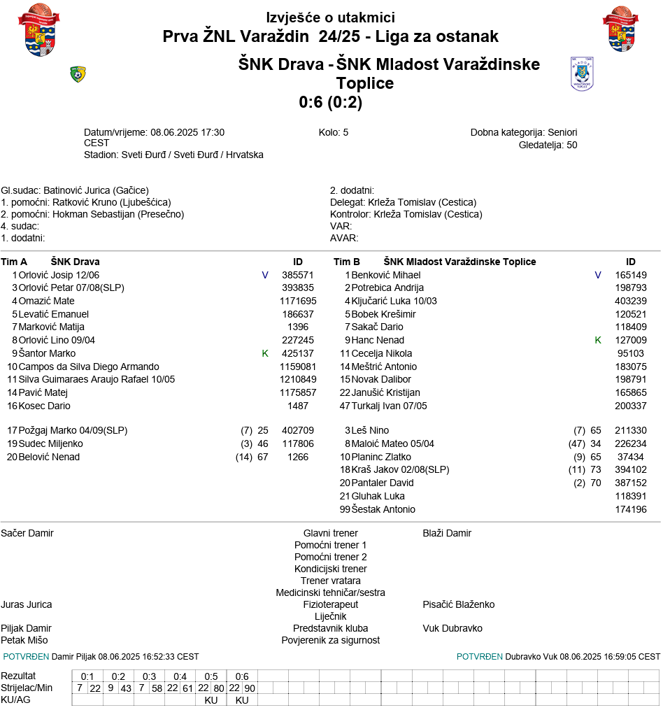 Mladost iz Varaždinskih Toplica uvjerljivom je pobjedom dokazala da je dostojna igranja ovog ranga natjecanja i sa šest pogodaka u mreži Drave osigurala ostanak u ligi. Najraspoloženiji pojedinac u redovima raspucane Mladosti bio je Kristijan Janušić koji je postigao tri pogotka.