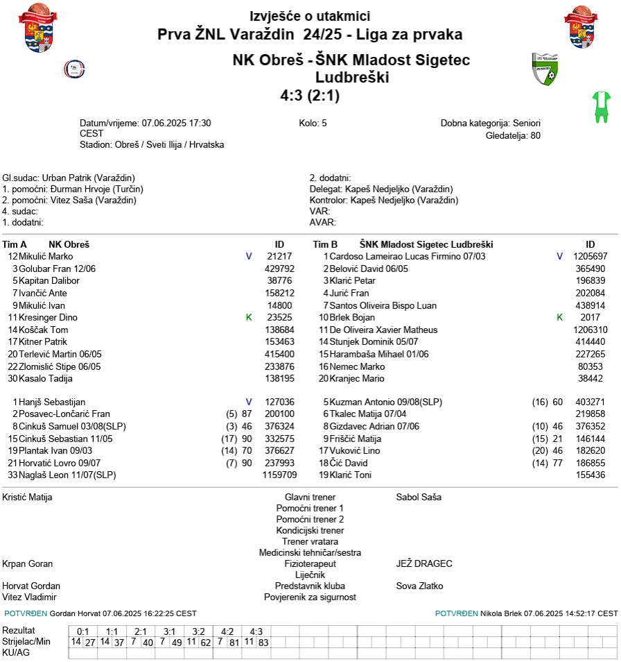 NK Obreš – ŠNK Mladost Sigetec Ludbreški 4:3