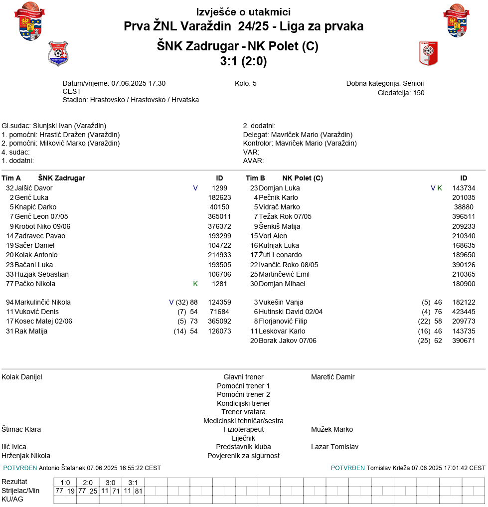 Drama na kraju Prve ŽNL Varaždin odigrala se u ligi za ostanak. Tamo je Beretinec zbog većeg broja postignutih pogodaka ostao u ligi, a u rang niže preselila se varaždinska Mladost. U ligi za prvaka Zadrugar je svladao Polet, dok je Nova Ves nastavila nogometnu bajku i krunisala sezonu drugim mjestom u ukupnom poretku.
