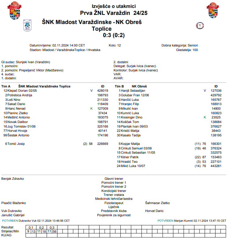 I Obreš je na gostovanju u Varaždinskim Toplicama osvojio bitne bodove. Tri pogotka bila su i više nego dovoljna za nova tri boda jer je domaćin ostao nedovoljno konkretan u ovom susretu. Ivan Mikulić i Dino Kresinger pogađali su za Obreš koji je ovom pobjedom ostao vrebati prvo mjesto iz prikrajka.