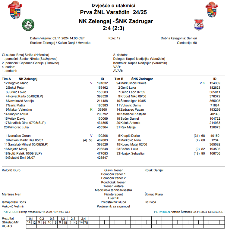 NK Zelengaj – ŠNK Zadrugar 2:4
