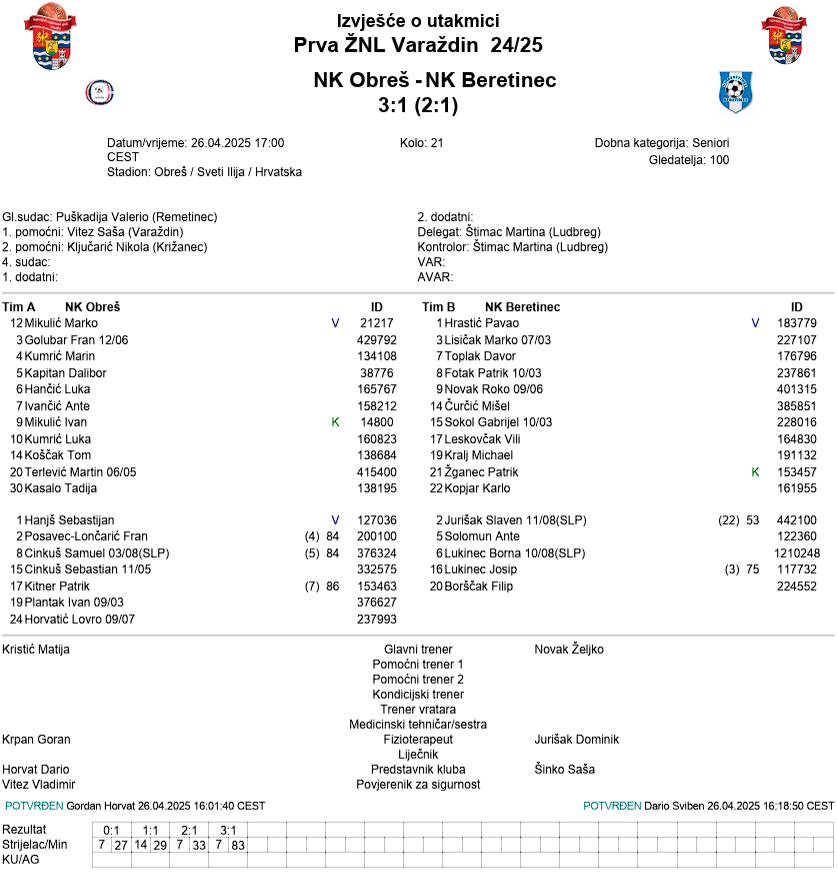 Obreš je uz raspoloženog Antu Ivančića upisao novu pobjedu kod kuće. Ovoga puta su bili bolji od Beretinca. Nije ih omelo ni što su kraj utakmice dočekali s desetoricom na terenu, štoviše i desetkovani su uspjeli potvrditi svoju zasluženu pobjedu.