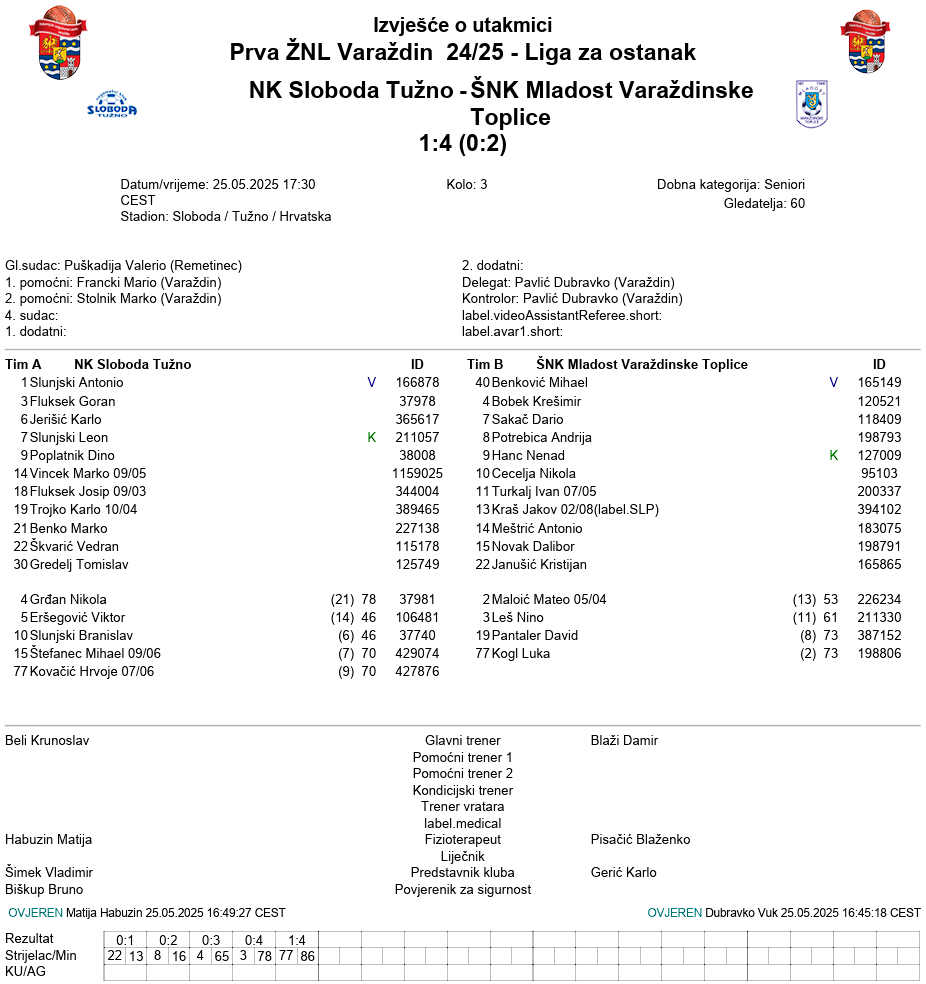 NK Sloboda Tužno – ŠNK Mladost Varaždinske Toplice 1:4