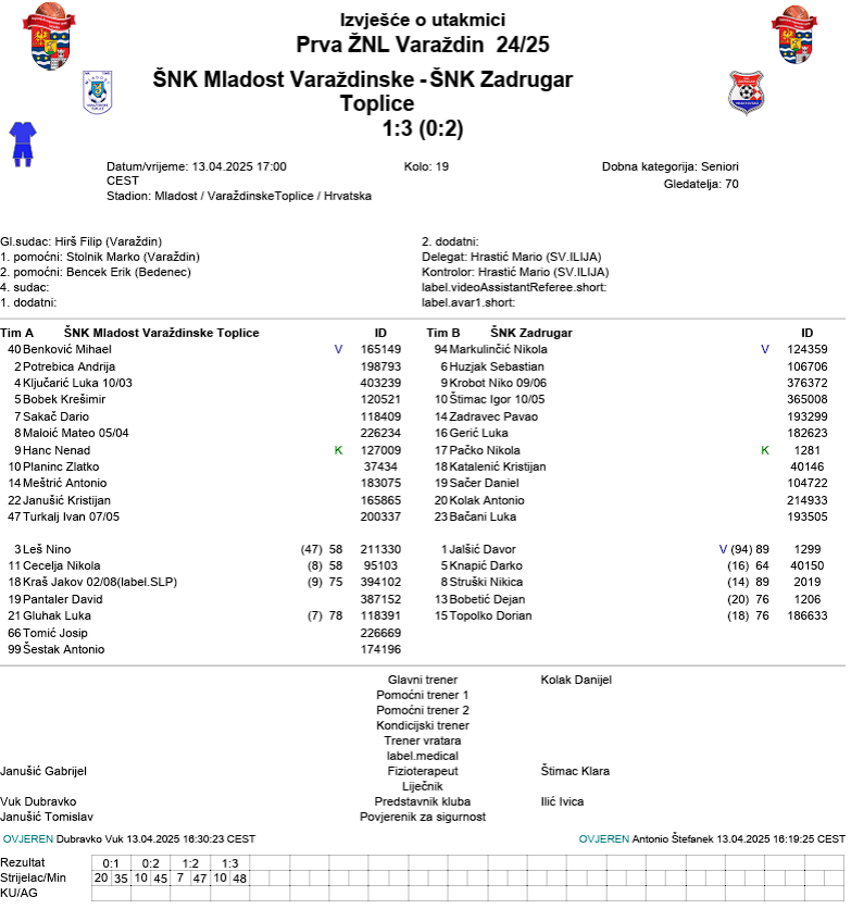 Zadrugar je nakon prošlotjednog poraza kod kuće, slavio na gostovanju u Varaždinskim Toplicama. Prvi je mrežu domaćina načeo Antonio Kolak, a potom je mladi napadač Zadrugara Igor Štimac nastavio svoju efikasnu sezonu i s nova dva pogotka pomogao svojoj momčadi.
