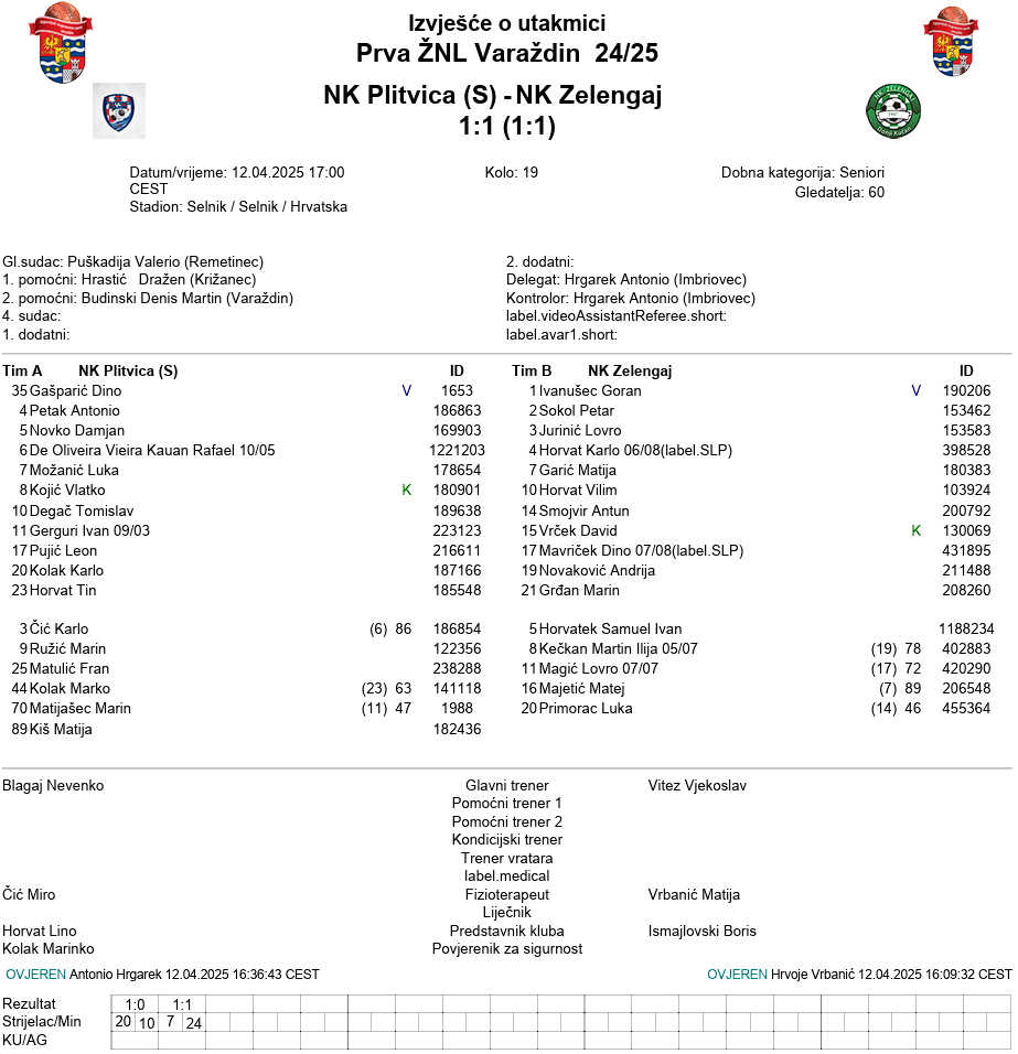NK Plitvica (S) – NK Zelengaj 1:1