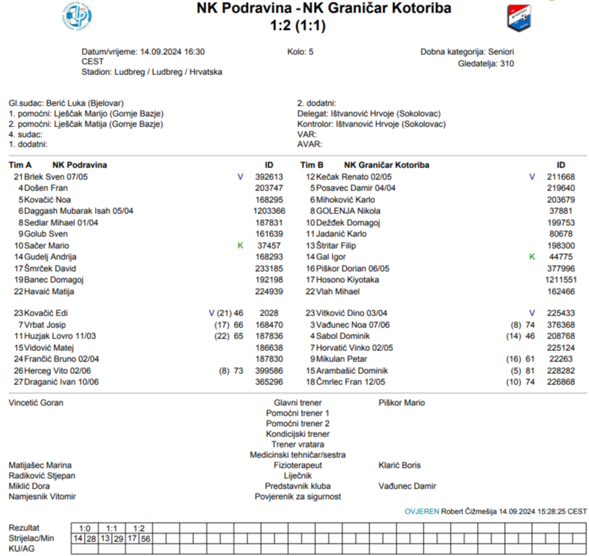 Teška utakmica i dobra s naše strane, ne mogu puno toga prigovoriti dečkima, imali smo inicijativu protiv jako dobrog protivnika, a javlja nam se boljka koja nas prati od početka prvenstva gdje stvaramo puno šansi, ali ih slabo iskoristimo dok je gost svojim nekoliko pretočio u pogotke i odnio bodove. Imali smo i izjednačujući pogodak u 90.minuti koji je poništen, teško mi je suditi da li opravdano ili nije. Veseli me unatoč svemu da smo moćni i da možemo trčati pa smo u završnici imali dominaciju i imali posjed no onih nekoliko obećavajućih situacija nismo uspjeli konkretizirati i postići pogodak za pozitivan rezultat – Goran Vincetić Podravina.
