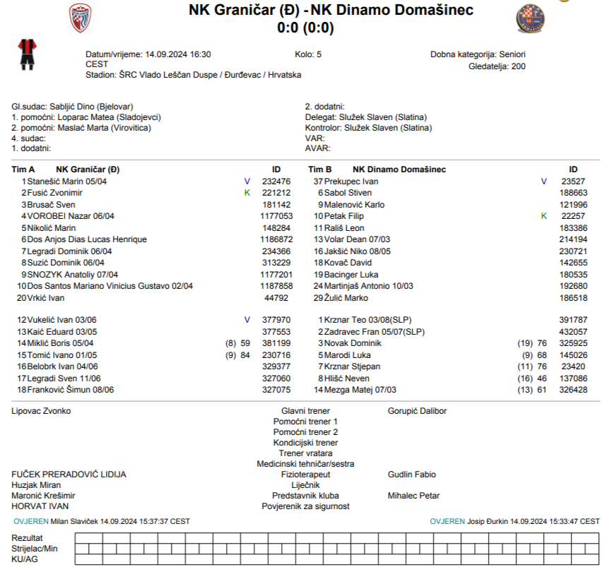 Danas smo odigrali jednu vrlo dobru utakmicu protiv dobrog Dinama koji se predstavio kao jedna uigrana i rastrčana ekipa. Mislim da smo imali zrelije prilike za postići pogodak, ali na kraju moramo biti zadovoljni sa rezultatom jer smo zadnjih dvadeset minuta igrali s igračem manje. Na kraju je svakoj ekipi pripao po bod što je realan rezultat – Zvonko Lipovac Graničar.