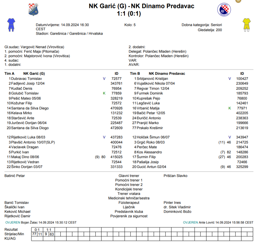 Tekma otvorena i ovo je po meni najrealniji rezultat. Mi bili bolji prvo poluvrijeme, oni vodili 0:1, po meni oni malo konkretniji drugo poluvrijeme, a mi izjednačili. Tako da utakmica završila po meni realnim rezultatom – Dragan Vaclavek Garić.