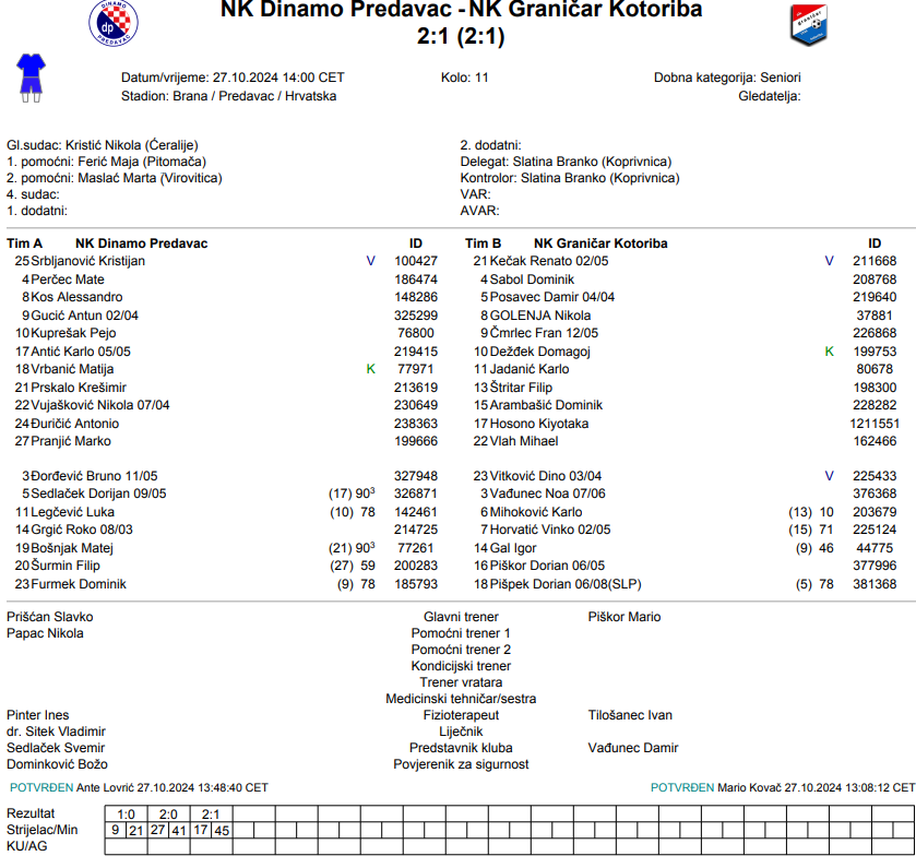 PREDAVAC: Dinamo – Graničar K 2:1