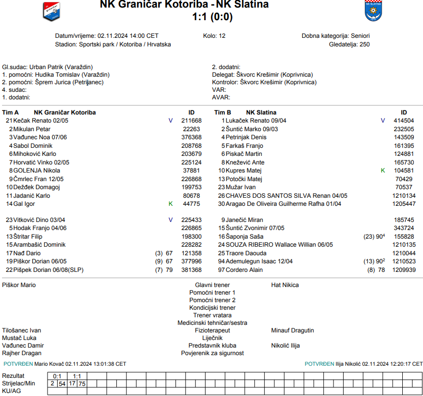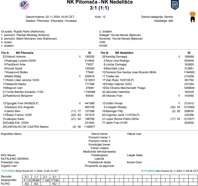 Utakmicu smo započeli bez kompletne zadnje linije i morali smo dosta toga prilagođavati i improvizirati u samoj pripremi utakmice. Utakmicu možemo podijeliti na dva dijela, u 1.poluvremenu smo dobro izgledali, poveli smo i imali par situacija iz kontre da odemo na dva razlike, imao je i domaćin svojih šansi i nažalost u zadnjim minutama primimo gol iz slobodnog udarca. U drugom poluvremenu odmah primamo gol i nažalost nismo imali ni energije ni širinu na klupi da se vratimo u utakmicu iako smo do zadnje minute držali utakmicu u neizvjesnosti. Nažalost prati nas nesreća u zadnje vrijeme i s ozljedama i kartonima, ne mogu ništa zamjeriti dečkima jer su dali sve od sebe, ali danas je domaćin bio bolji i čestitamo im na pobjedi. Nama sada slijede utakmice s ekipa iz donjeg dijela tablice i tu trebamo tražiti priliku za bodove – Ivan Habuš Nedelišće.