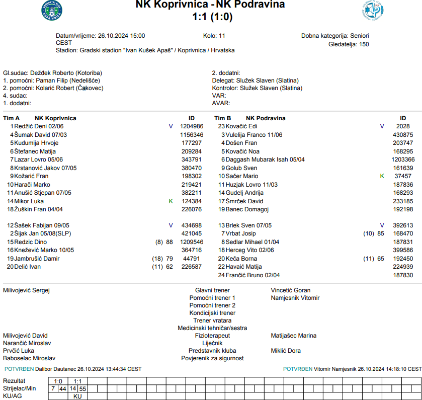 Odigrali smo dobru utakmicu, raduje me što smo drugo poluvrijeme bili dominantni i pokazujemo da smo dobro fizički pripremljeni i dižemo se iz utakmice u utakmicu. čestitam svojim igračima na trudu i angažmanu, bod u gostima je uvijek dobar – Goran Vincetić Podravina.