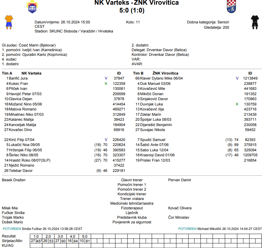 Gostovanje kod jako dobre ekipe Varteksa, poraz, na žalost uz rezultat i ozlijede. Ovu polu sezonu svi pehovi nas prate. Ali moramo se pokusati izdići iz svega toga i početi uzimati bodove – Krešimir Crvenka Virovitica.