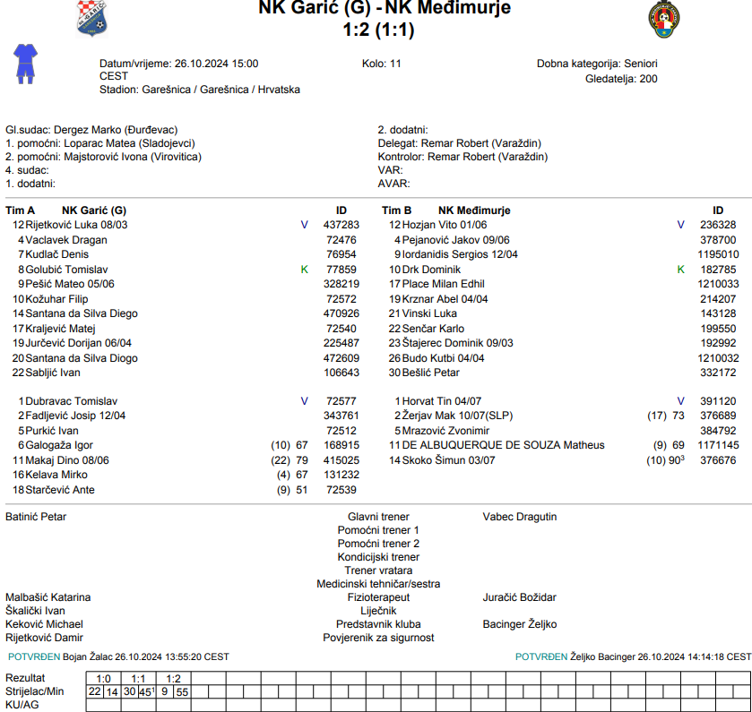 Vrlo sam sretan i zadovoljan i pokazuje se da smo uvijek bolji u gostima gdje nas dođe gledati više ljudi, atmosfera bude poticajna pa tako reagiraju i moji igrači. Bio sam zadovoljan i s bodom no i ova tri su me jako obradovala. Dao sam priliku i mlađim igračima tako da sam baš zadovoljan nakon ove utakmice i n ove pobjede koja nam je baš jako trebala – Drago Vabec Međimurje.