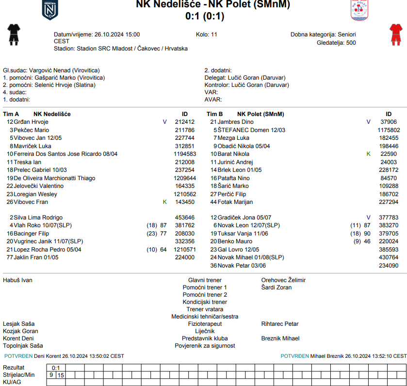 S obzirom da nam je nedostajalo zbog suspenzije i ozljeda praktički pola ekipe pružili smo jako dobar otpor i hrabro odigrali protiv favorita prvenstva. Polet je bio za taj jedan pogodak bolji iako smo pogotovo u drugom poluvremenu imali dobre situacije i šanse da izbjegnemo poraz. Fazu obrane smo korektno odigrali i nismo dopustili puno situaciji gostima, ali opet smo primili prenaivan gol koji je odlučio utakmicu. Čestitke Poletu na pobjedi i mojim igračima na borbenosti i hrabroj utakmicu i nadam se da će nam se taj pristup vratiti u narednim utakmicama – Ivan Habuš Nedelišće.
