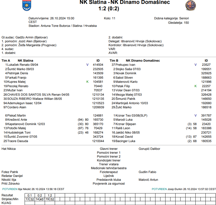 Vjerovali smo, kako bi danas mogli prekinuti naš niz poraza, no gosti zasluženo zbog odlično odigranog prvog poluvremena nose kući sva 3. Iz te kompaktnosti dolaze zasluženo u vodstvo, te nažalost u zadnjoj minuti prvog poluvremena primamo i drugi pogodak. U drugo poluvrijeme ulazimo odlučnije i ubrzo uspijevamo smanjiti zaostatak, pokušavamo i nakon toga, otvaramo se još više što i gosti koriste za kontre i polukontre. Čestitam Dinamu na zasluženoj pobjedi, a nama slijede 3 jako teške utakmice sa momčadima iz gornjeg dijela tablice – Nikica Hat Slatina.