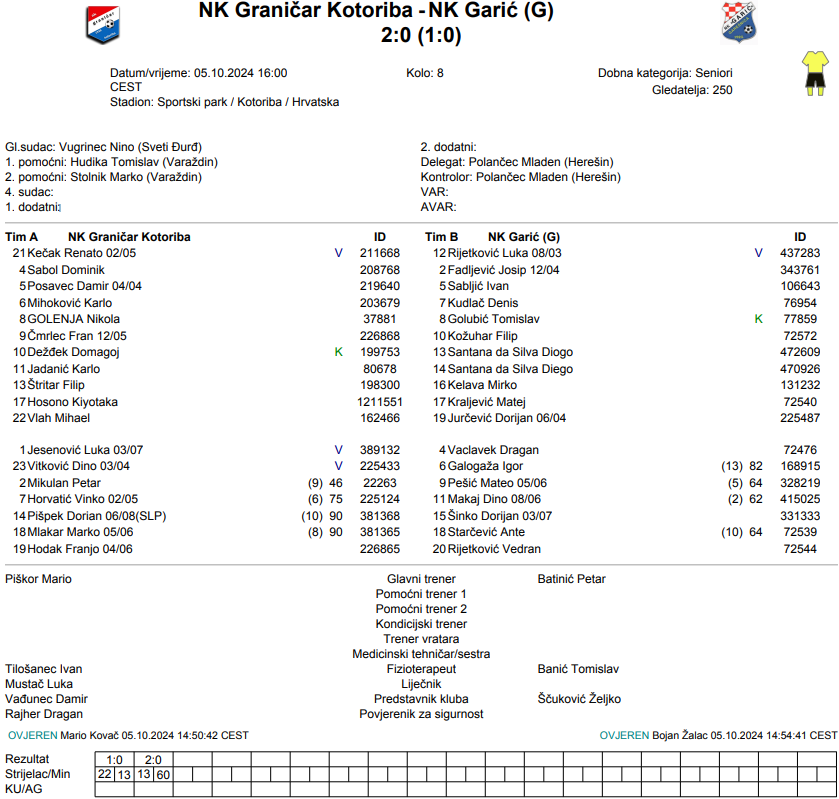 Ne ulazimo dobro u utakmicu i gost već nakon 10 minuta vodi sa 2:0. Kao da tek onda počinjemo igrati nogomet, ubrzo smanjujemo i imamo nekoliko poluprilika, ali ništa konkretno. U nastavku pokušavamo kontrolirano pritiskati protivnika ali nas presjeca 3 pogodak gostiju i nakon toga imamo ponovno nekakve poluprilike, ali ne uspijevamo smanjiti protiv odličnog i organiziranog protivnika kojem i ovim putem čestitam na pobjedi. Nama se kriza rezultata produbila, a slijede nam dva gostovanja u nizu – Nikica Hat Slatina.