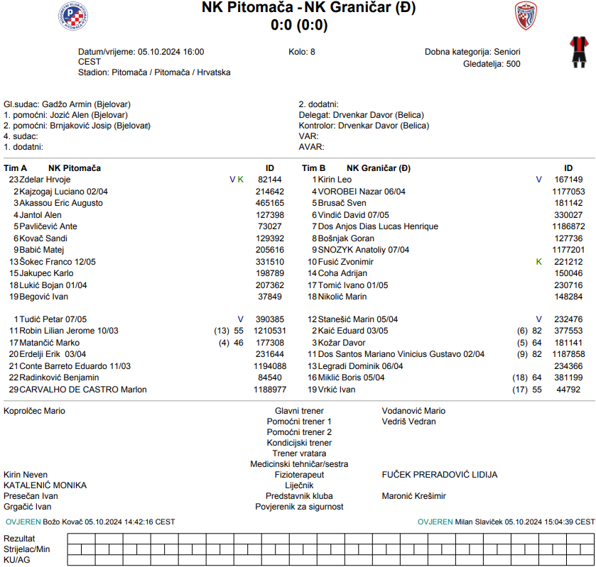 Čestitam ekipi Pitomače na fer i korektnoj utakmici te mojim igračima da odličnoj partiji, odigrali smo dobru utakmicu, jako dobro parirali, znali smo odakle prijeti opasnost i neutralizirali prijetnje. U kratkom razdoblju koliko smo zajedno podignuli smo energiju i pristup ovo je izgledali sasvim pristojno. Pitomača je imala blagu inicijativu, mi prijetili iz kontri i polukontri, imali smo nekoliko situacija pred kraj i dvije mrtve šanse koje nismo zabili, ali i Pitomača je imala dvije stative pa je na kraju ishod realan i da su obje momčadi zaslužile po bod. Možemo biti zadovoljni s ovim i idemo dalje raditi i mislim da ćemo u budućnosti biti sve bolji i bolji – Mario Vodanović Graničar.