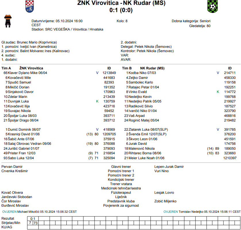 Nažalost poraz doma od dobre ekipe Rudara. Primamo gol iz kornera, jeftini golovi koji se ne smiju primati, ali eto dug je put odrastanja – Krešimir Crvenka Virovitica.